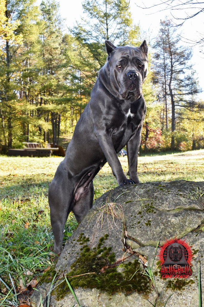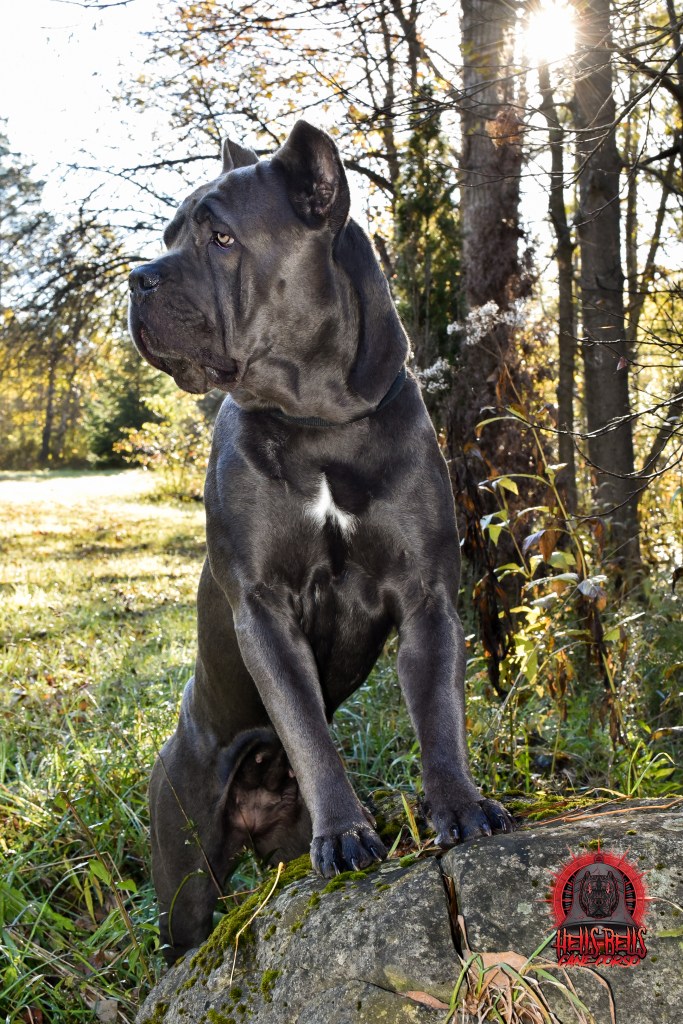 My name is Charlene, and I am the owner/operator of Hells Bells Cane Corso. I live in Chatsworth, Ontario (aprox 2 hours north of Toronto) with my 4 son’s and husband, Adam. on 7 acres in the country. My love for the Corso started in 2017 when I obtained my first female; Athena. She was an exceptional dog, loyal guardian, and dedicated companion. I knew right then, that this breed was for me. From there, our crew grew from one female plus two males (Axel and Kavik). They soon became the best of friends, and loyal protector of our four kids. Corso’s are not a breed for everyone. They are strong willed, abundantly observant, sensitive to their surroundings, and extremely attached to their “people”. They are excellent with my children, and serve as loyal and dedicated companions. We operate a small scale kennel currently with one breeding, grey female. We offer a 2 year health guarantee on all puppies, and our female has been extensively health tested with Embark, OFA, and Pennhip to ensure quality produced puppies. Our pups also come with CKC, ICCF and AKC registration, microchip, tail docking, and up to date vaccinations and veterinary care. For updates on any upcoming litters, please follow us on facebook @ https://www.facebook.com/hellsbellscanecorso/about/?ref=page_internal or on Instagram @hellsbells_canecorso